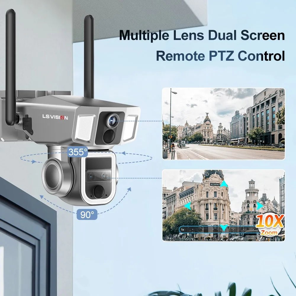 1. 2K/ 4MP multi-lens wifi solar powered battery floodlight PTZ camera