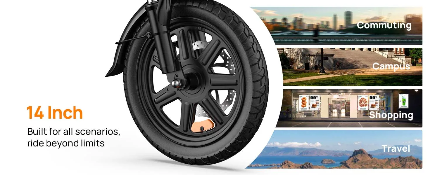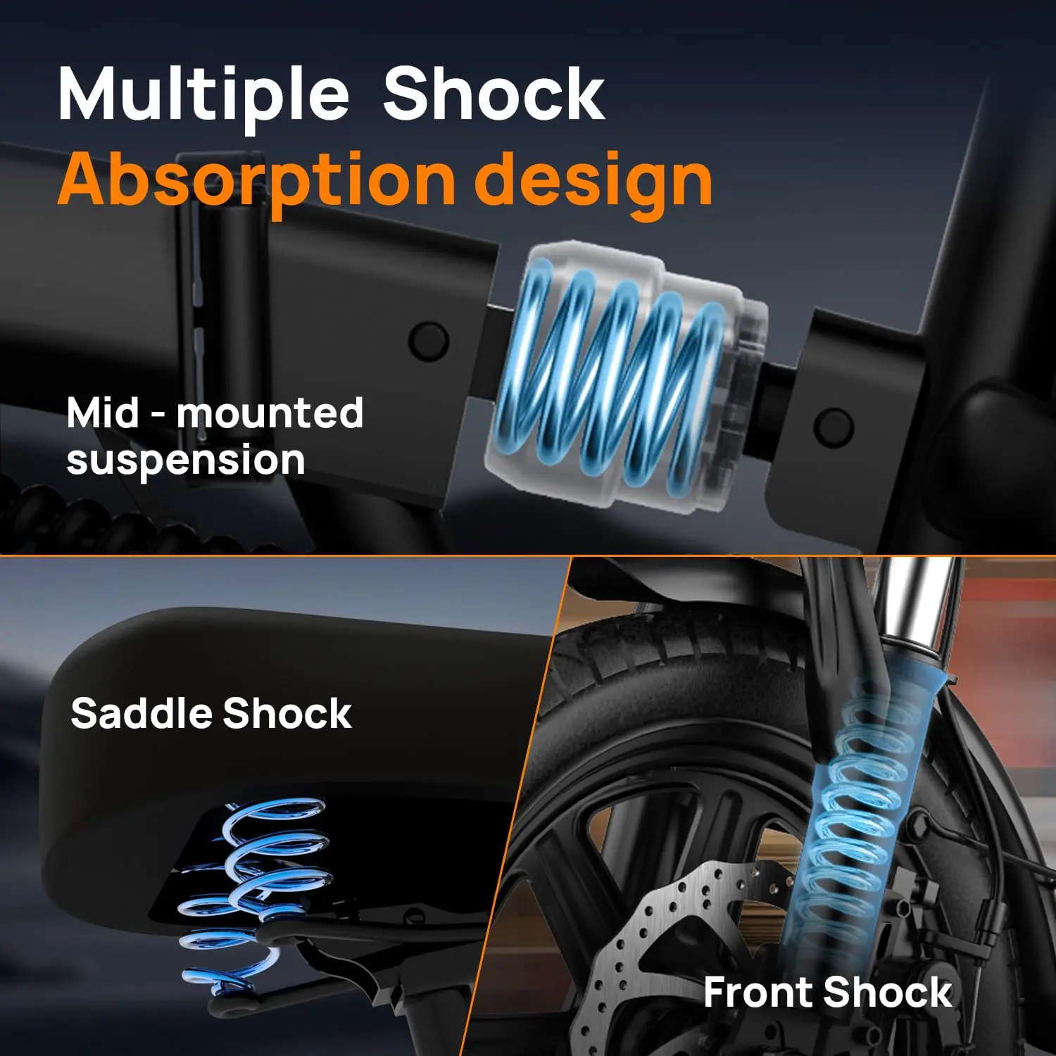 14″ Foldable Electric bicycle for Adult, Peak 500W Motor with 48V 7.5Ah Removable Battery 40 Miles Range 3 Hours Charge Time