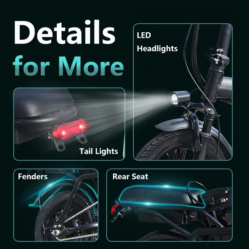 Adult Electric Motorcycles Bicycle 500W Peak Motor 30 Miles Range 48V 10Ah Battery Mini Folding Electric Bike