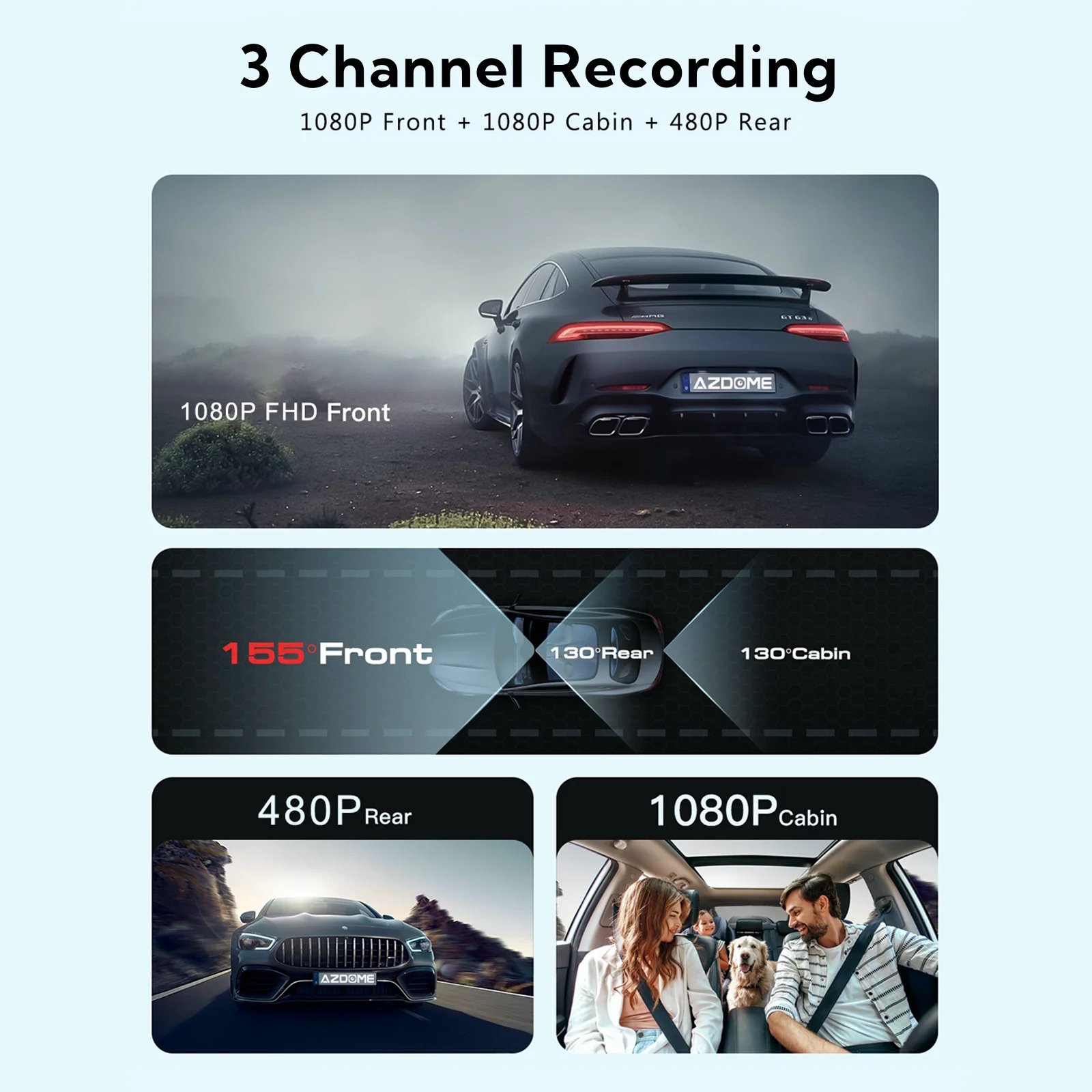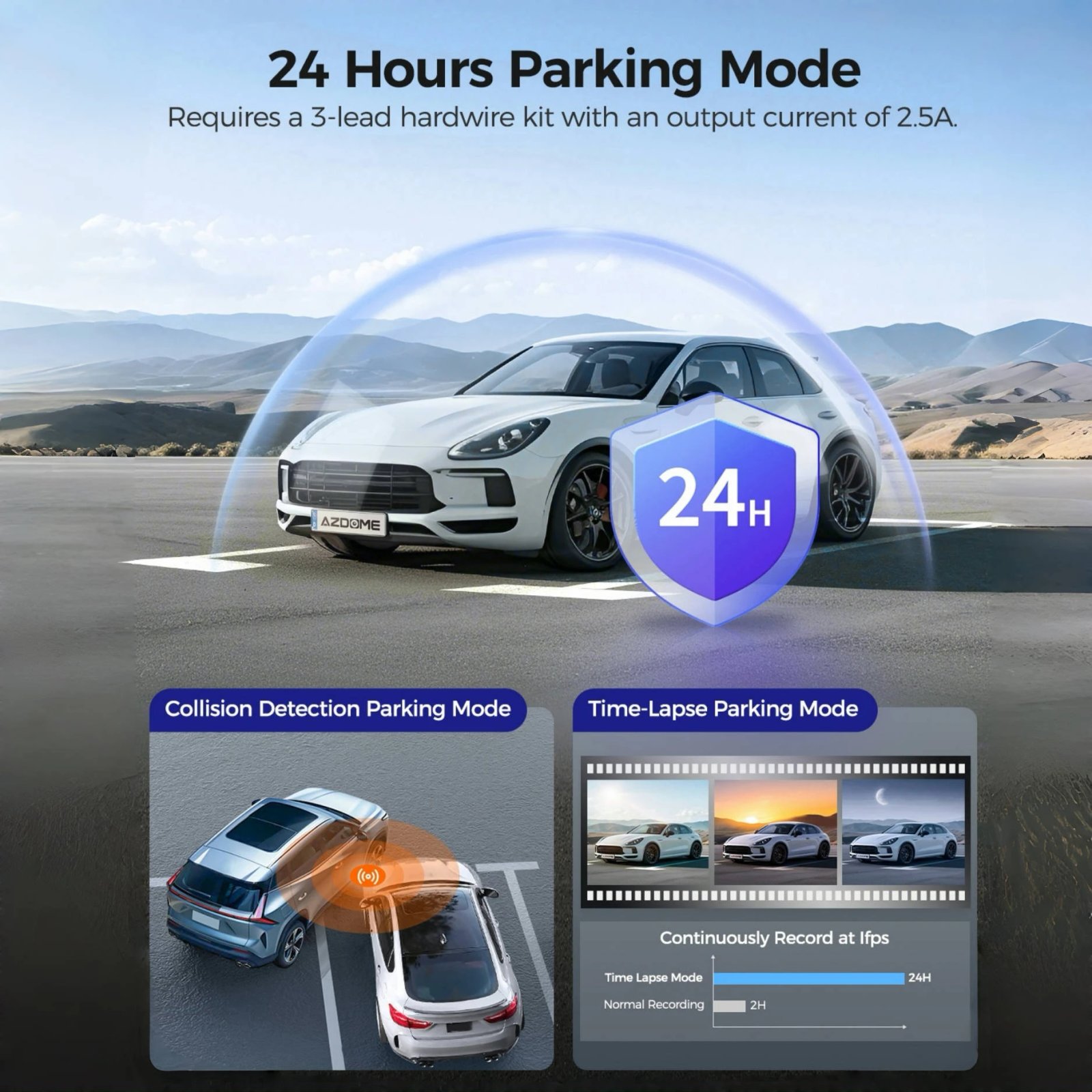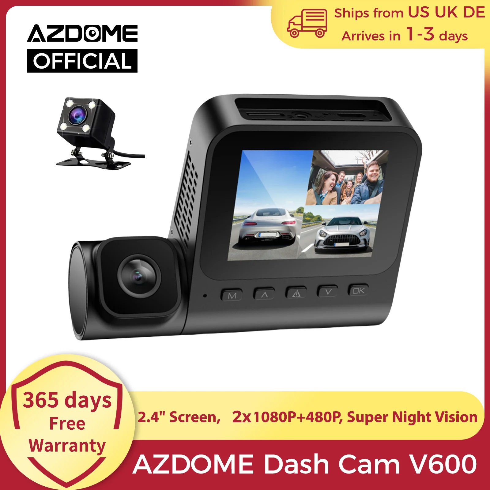 AZDOME Dash Cam V600 2.4″ Screen 2x1080P+480P Car Camera G-Sensor Super Night Vision Car DVR 24H Parking Mode Support Rear Cam