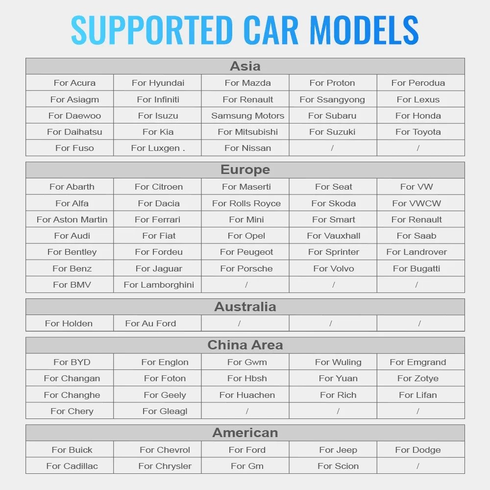 Ancel X6 OBD Car Diagnostics Support Car brands: