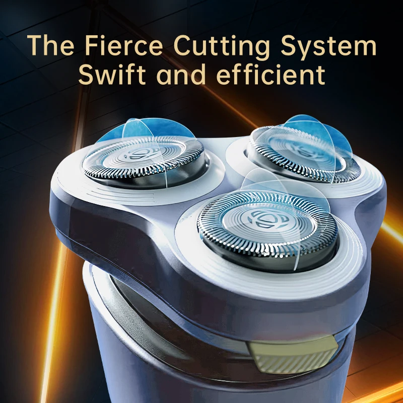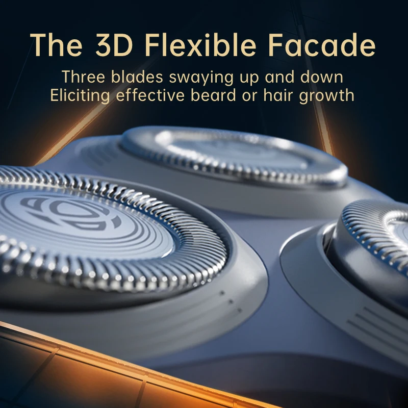 3, 3D floating heads effectively capture facial and neck hair. The heads move up and down to conform to the curves of your face and neck, mitigating excess pressure during shaving for a comfortable shaving experience.