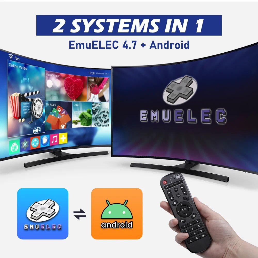 The console has EMUELEC 4.7 game system, an Android 9.0 Android system,. It is not only a TV box but also a game console.