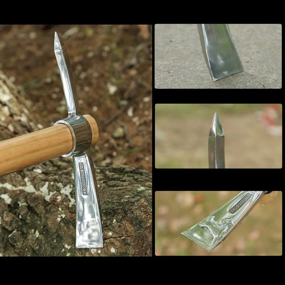 Thicken pickaxe with sharp cutting edge, much easier to excavate stone and dig.