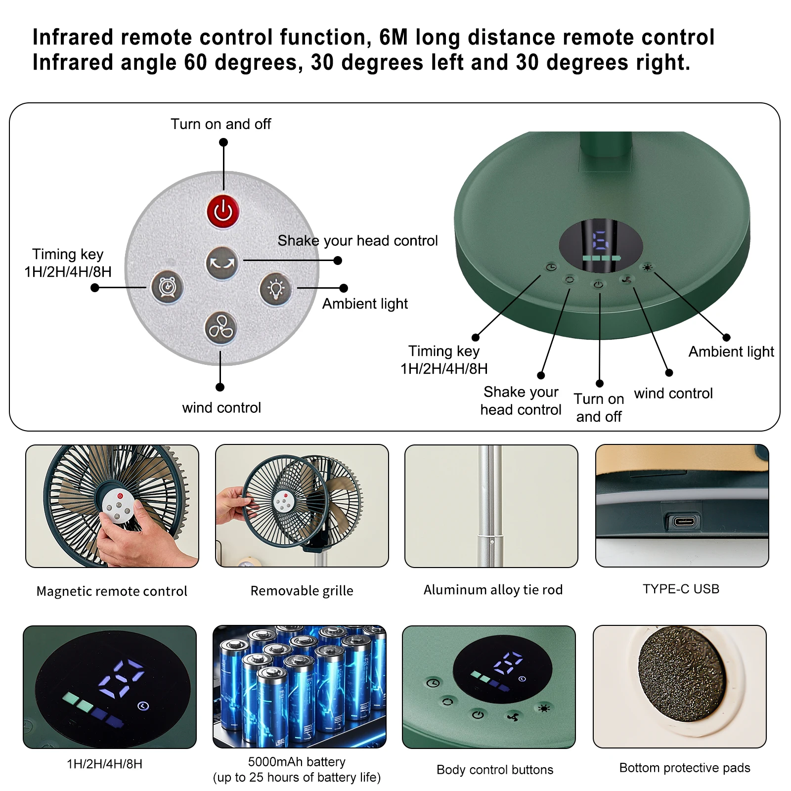 10 inches Remote control aluminum alloy folding fan outdoor home ultra quiet gathering camping fan USB table floor dual-use fan