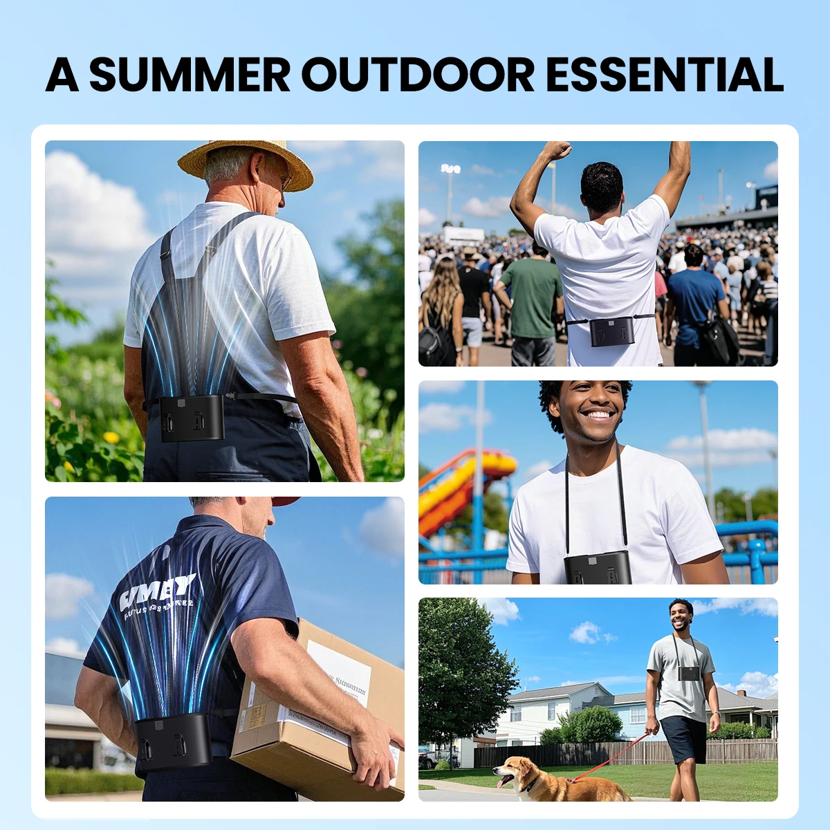 This fan offers a versatile design, allowing it to be used as a waist fan, desk fan, or neck fan for flexible cooling. Ideal for construction sites, gardening, theme parks, camping, or walking your dog