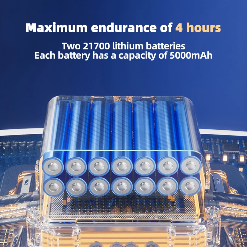2.BL02 2025 NEW Black 10000mAh Turn on ON and briefly press the motor button to switch between 1-4 speeds. No need to long press, you can blow out the maximum wind pressure!