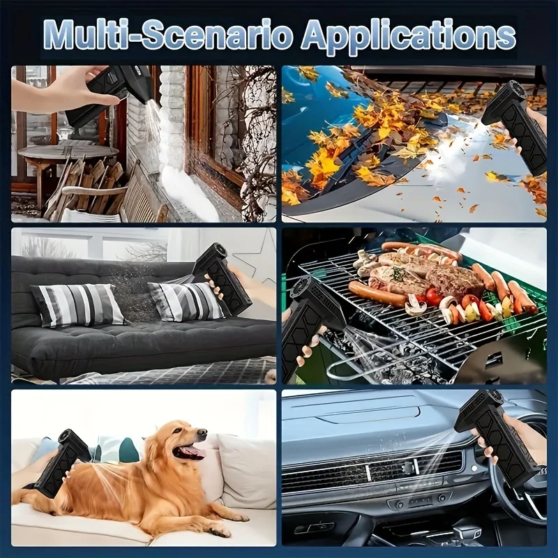 【Uable time per gear】First gear range: 65 minutes, Second gear range: 35 minutes, Third gear range: 27 minutes, Overclocked range: 11 minutes.【Multiple Use】–This product is lightweight in size with 315g. It is easy to carry and can be used indoors and outdoors. It is suitable for a variety of scenarios, such as cleaning desktops, keyboard camera lenses, drying pet hair, and water droplets on windows.