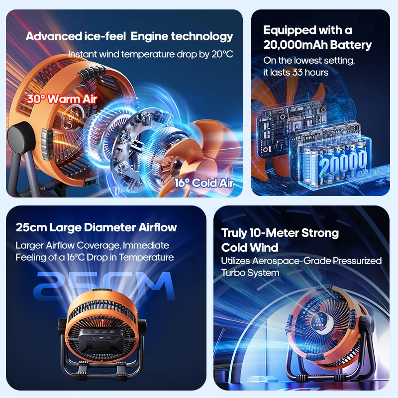 New Multifunctional 6 in 1 Desktop Fan 20000mAh Outdoor Camping Fan Air Circulator 4 Speed Adjustment Wireless Tent Ceiling Fan