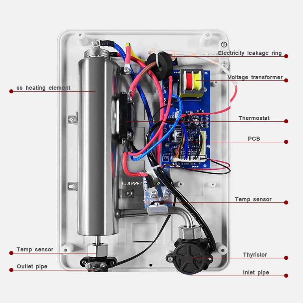 A: Please confirm the maximum electrical power that your home circuit can withstand before purchasing. The working power of the water heater is 3500-6000W to avoid circuit overload.