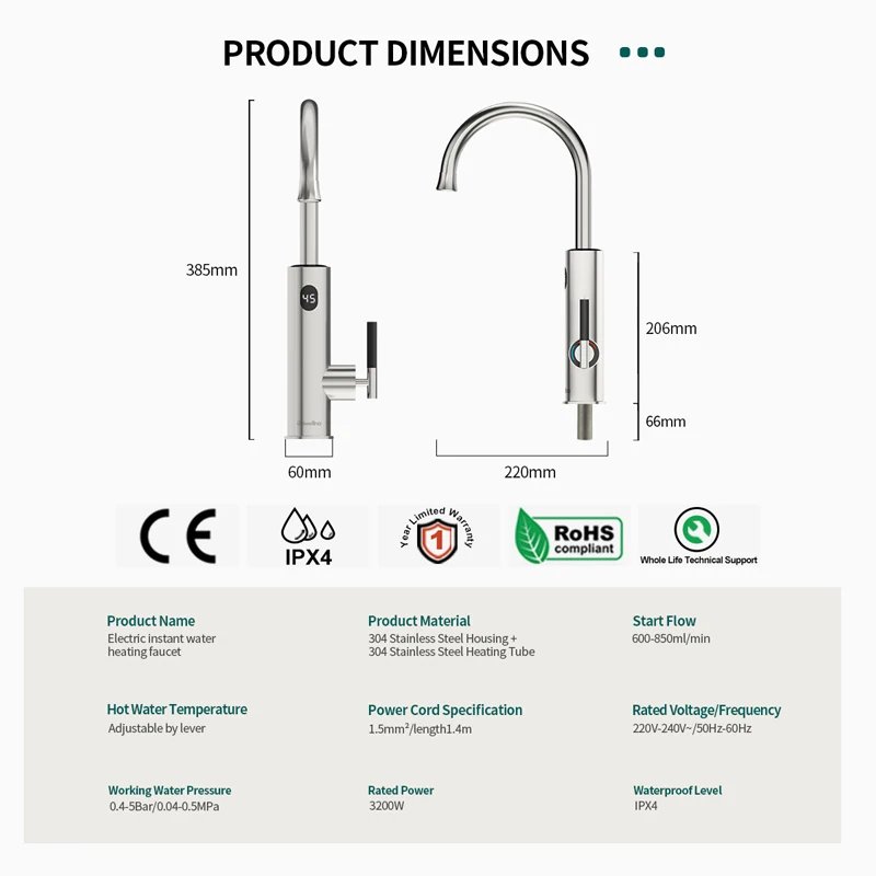 Name: 3200W Digital Temperature Display Instant Hot Water Tap Faucet Robinet Electric