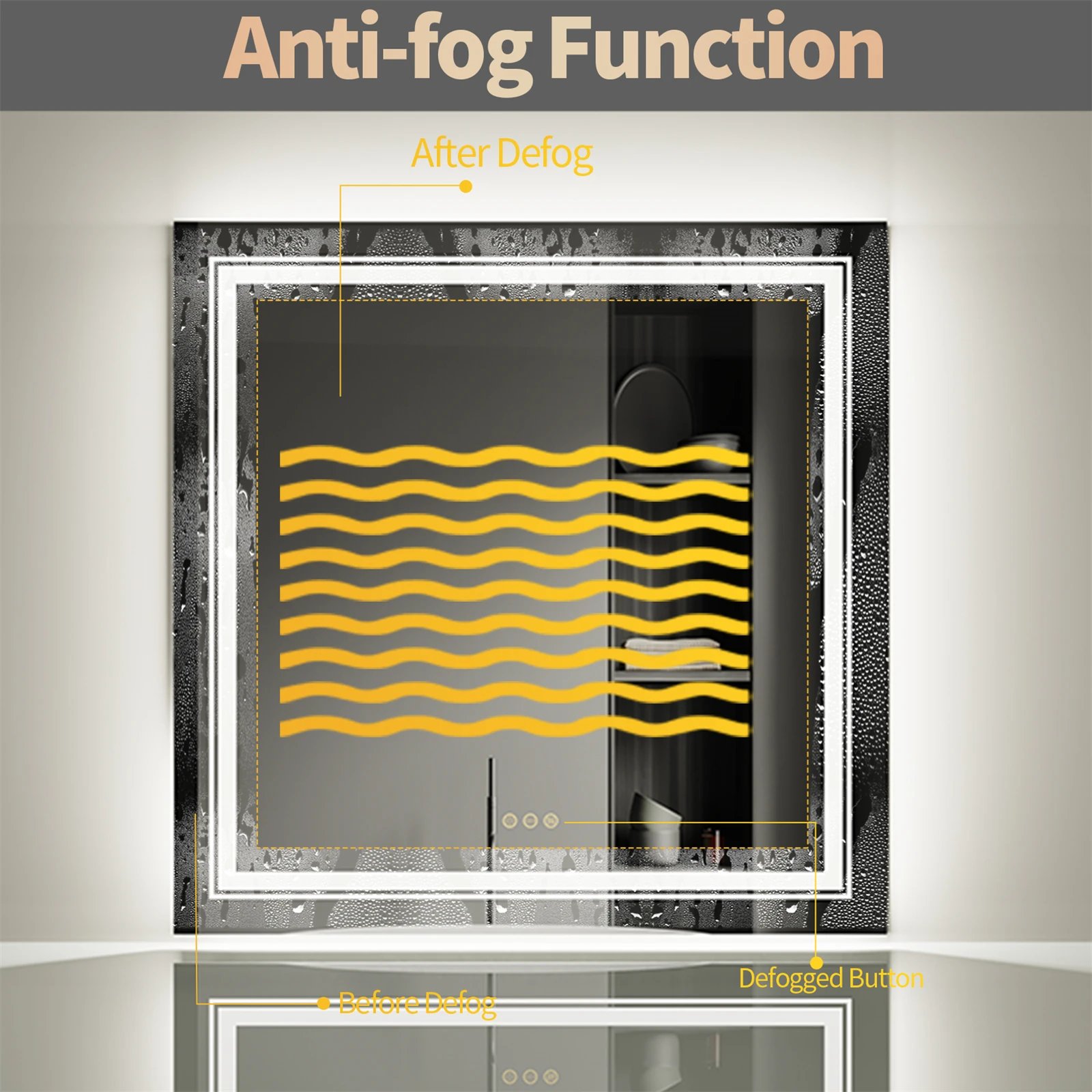 【Led Lighted Mirror】Designed with front and backlit lights, the illuminated mirror provide full illumination for makeup, shaving, grooming, the backlit hidden behind the mirror, it creates a soft and beneficial glow, led lights won’t cast shadows on your face