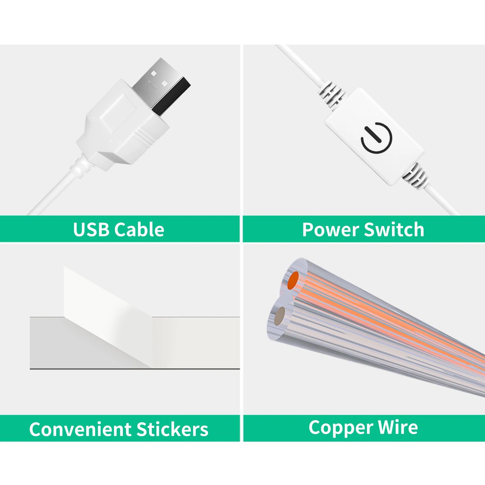 [USB Powered]With a 1.5m USB power cord, you can connect the lights to the power bank, PC, or phone power adapter.
