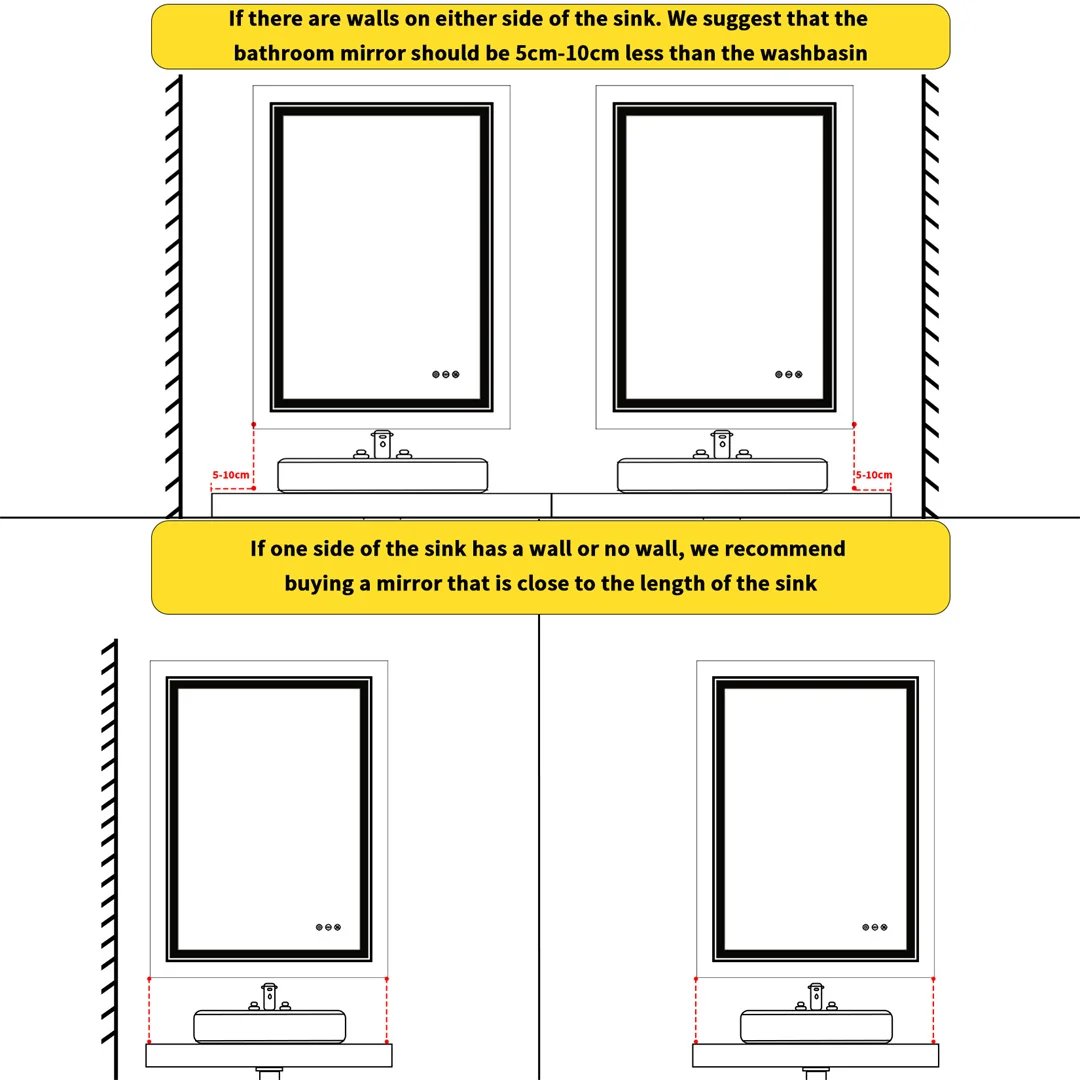 【Upgraded & Durable】LUVODI bathroom mirror is upgraded, it can add value to your home by providing a modern look that is also functional.The mirror made with 5mm thicken HD glass and wrapped in sturdy aluminum frame, surprisingly durable and sturdy. UL certificated components for reliability. IP44 waterproof rating for safe use.