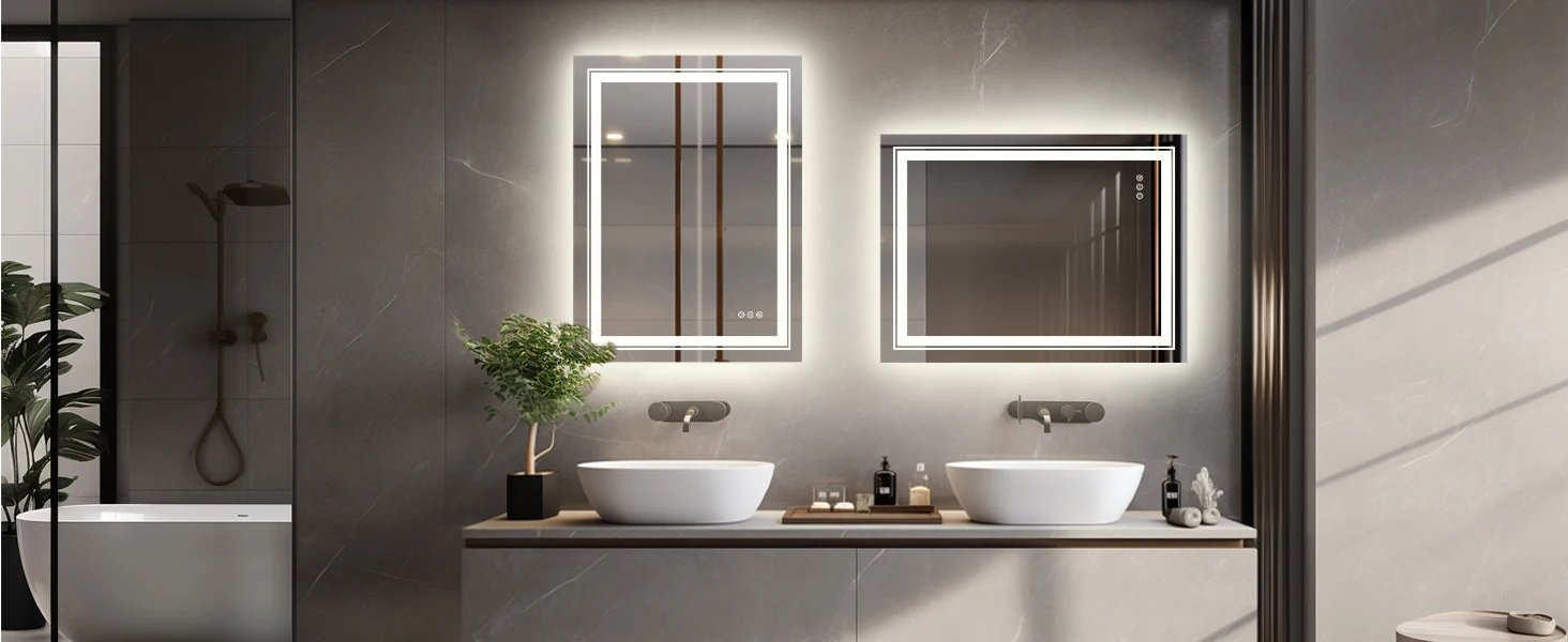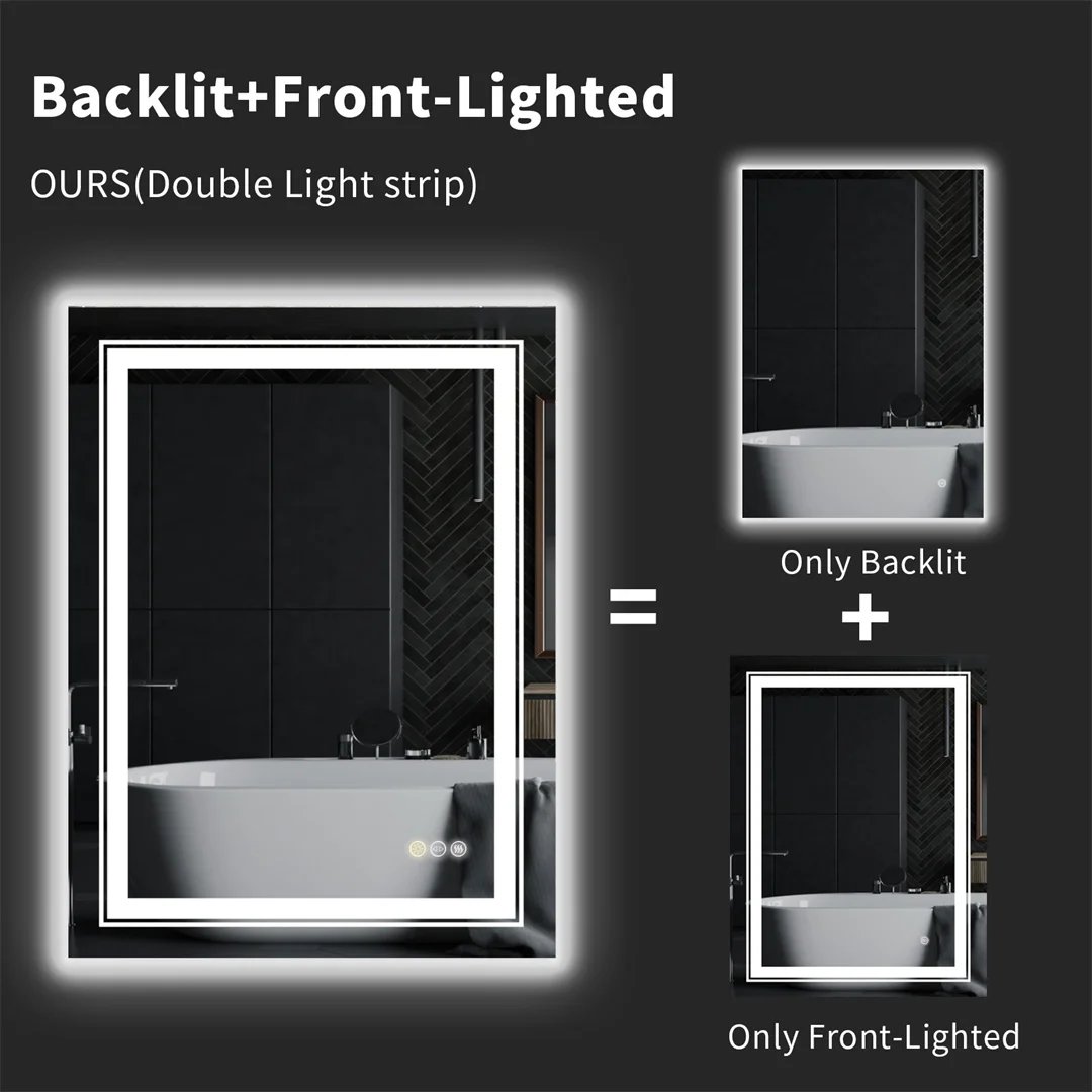 【Led Backlit Bathroom Mirror】LUVODI mirror features frameless design, with backlit lights and led strips, dual lighting sources,it projectspractical light from the front of mirror and the back.It creates the ideal reflection for makeup applications, making sure that there are no missed spots on your face when shaving or makeup.