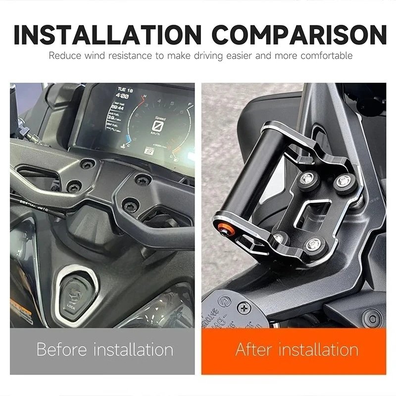 – Easy installation and adjustment: The bracket is easy to install and adjust, allowing you to quickly and easily attach your device to the bracket. The adjustable design also allows for a custom fit, ensuring a secure and comfortable fit on your motorcycle.