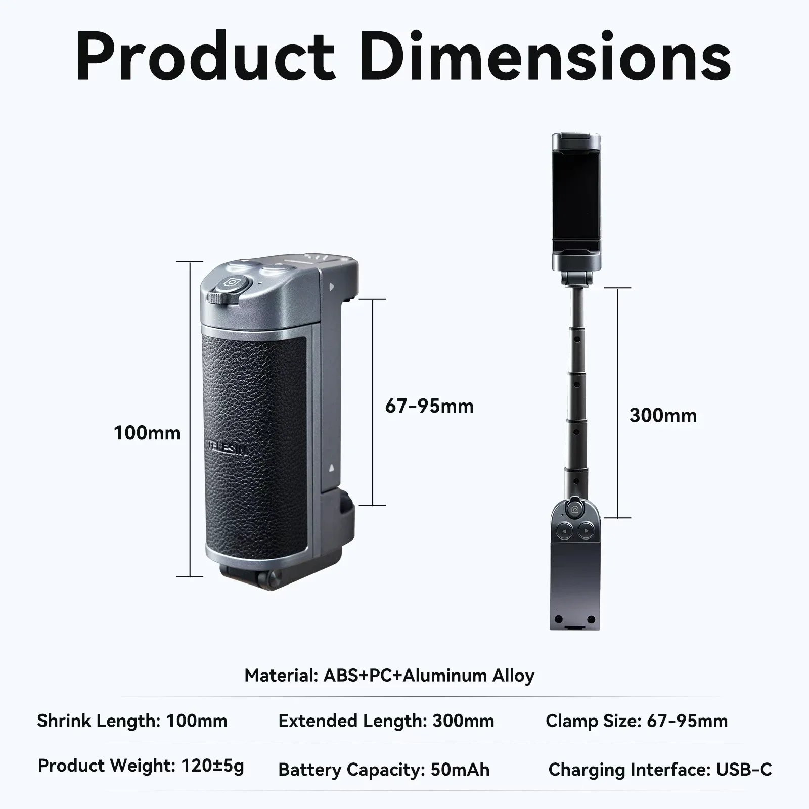 Extend your reach with a retractable 30cm selfie stick for group shots or vlogging. Convert the grip into a stable desktop stand for hands-free filming or video calls.