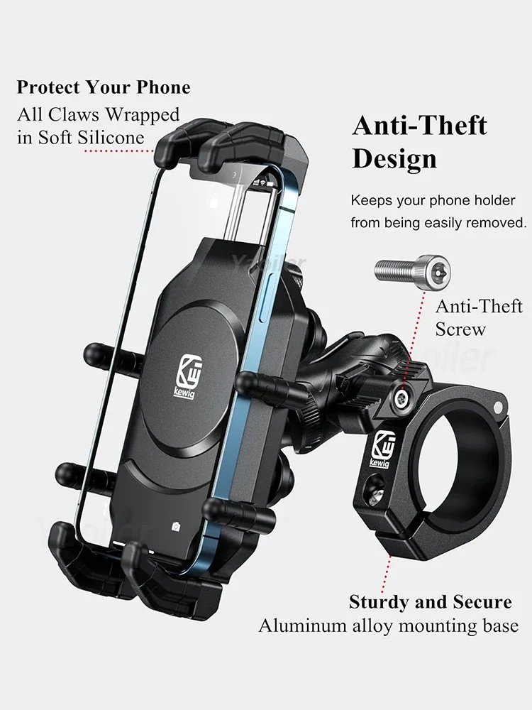 2. Protective mobile phone holder design: The double socket arm of UTV phone holder is equipped with special anti-theft screw. The package comes with a special wrench to tighten the special screw. This design keeps your phone holder from being easily removed. Provides additional protection against theft