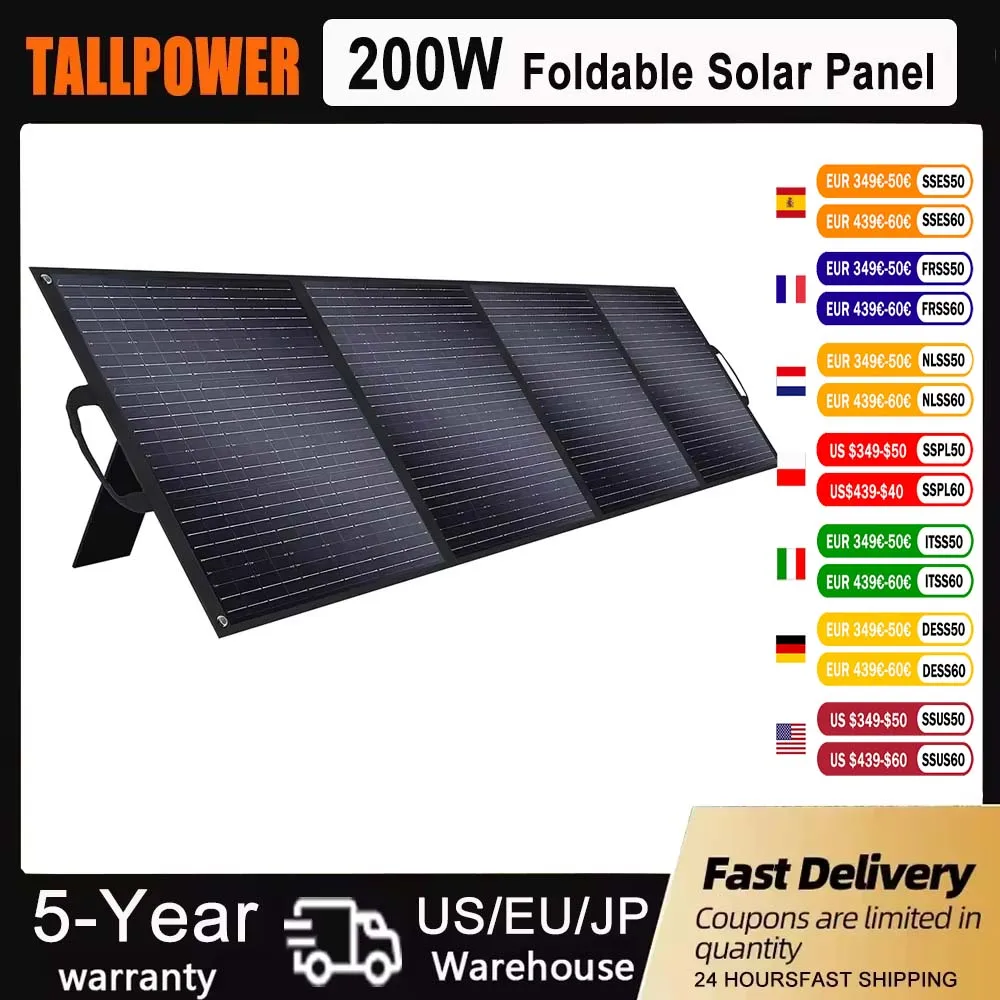 The 200W solar panel, featuring ETFE film and monocrystalline silicon, achieves up to 23.4% conversion efficiency. Its design enhances light absorption and efficiency, providing reliable electricity even in low light. This green energy solution eliminates the need for fuel-based generators by harnessing solar power.